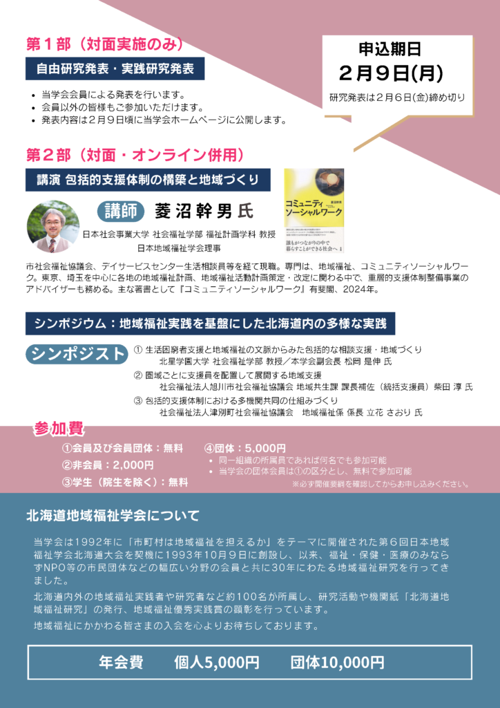 ※会員は「北海道地域福祉学会員」若しくは「日本地域福祉学会員のうち、北海道部会員(団体含む)」に限ります。
